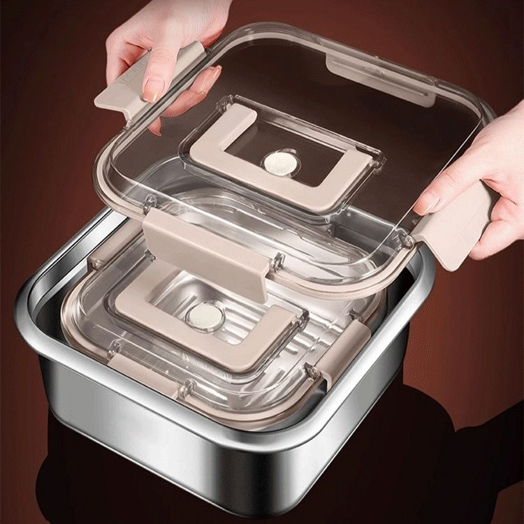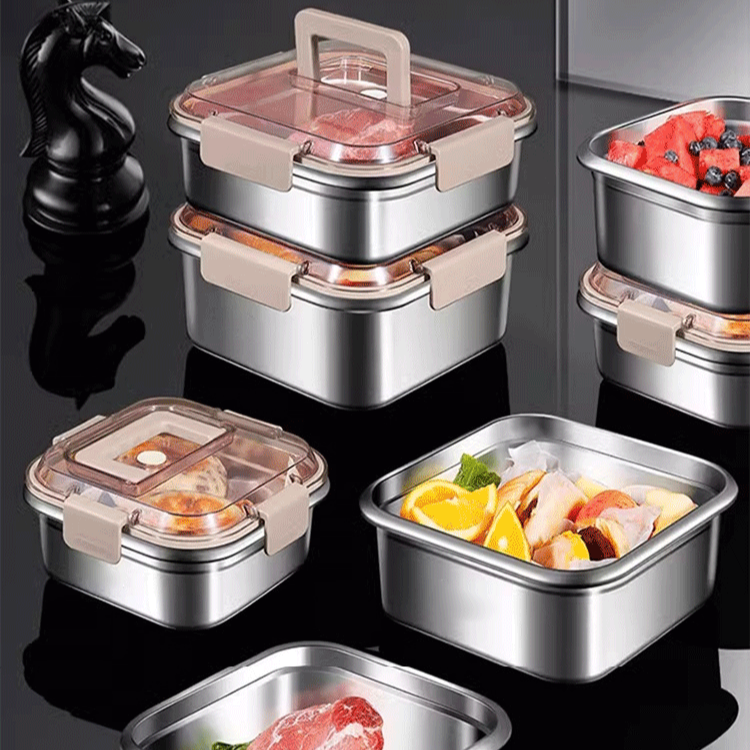 便携不锈钢保鲜盒 冰箱专用收纳盒 食品级密封饭盒 户外厨房便携保鲜盒